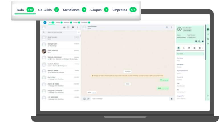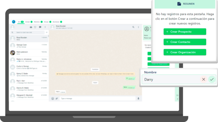 Estrechamente conectado con CRM para integrar mensajes de WhatsApp como comentarios, Tickets u otras funciones importantes..